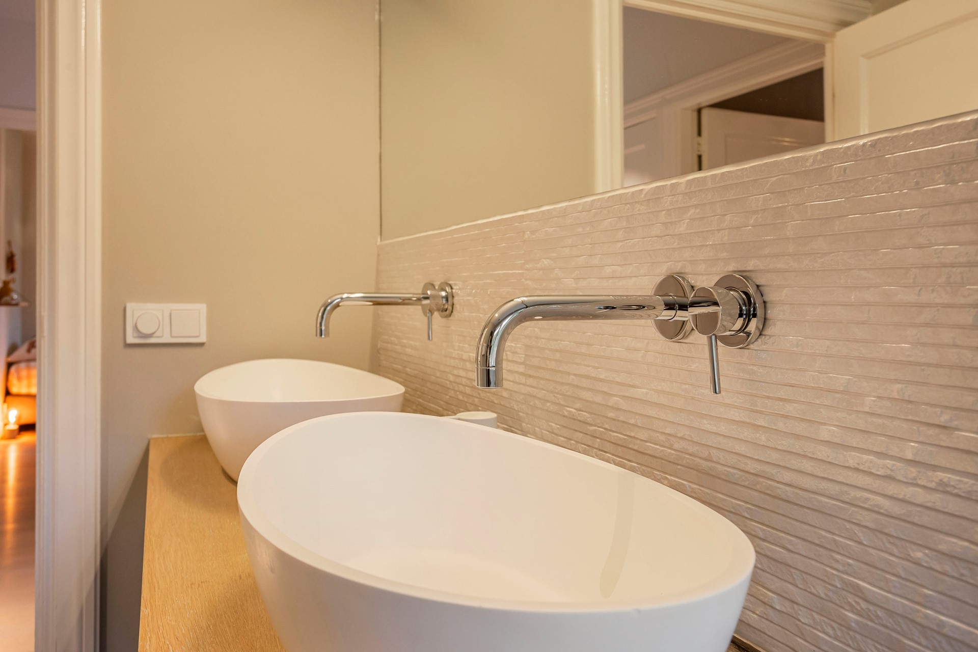 Via de trap met bordes en overloop, toegang tot de 3 sfeervolle slaapkamers waarvan met 1 met recht de master bedroom genoemd kan worden. Ruime moderne badkamer uitgevoerd met een dubbele wastafel met meubel, een ligbad en een inloopdouche. Toiletruimte.