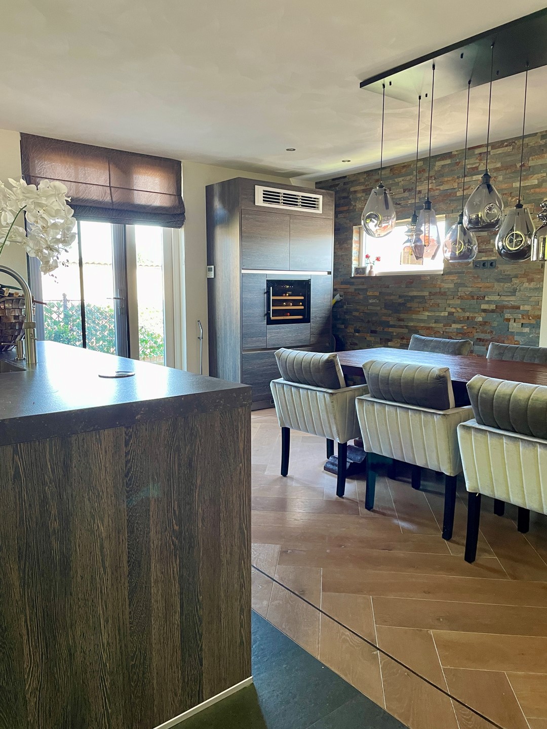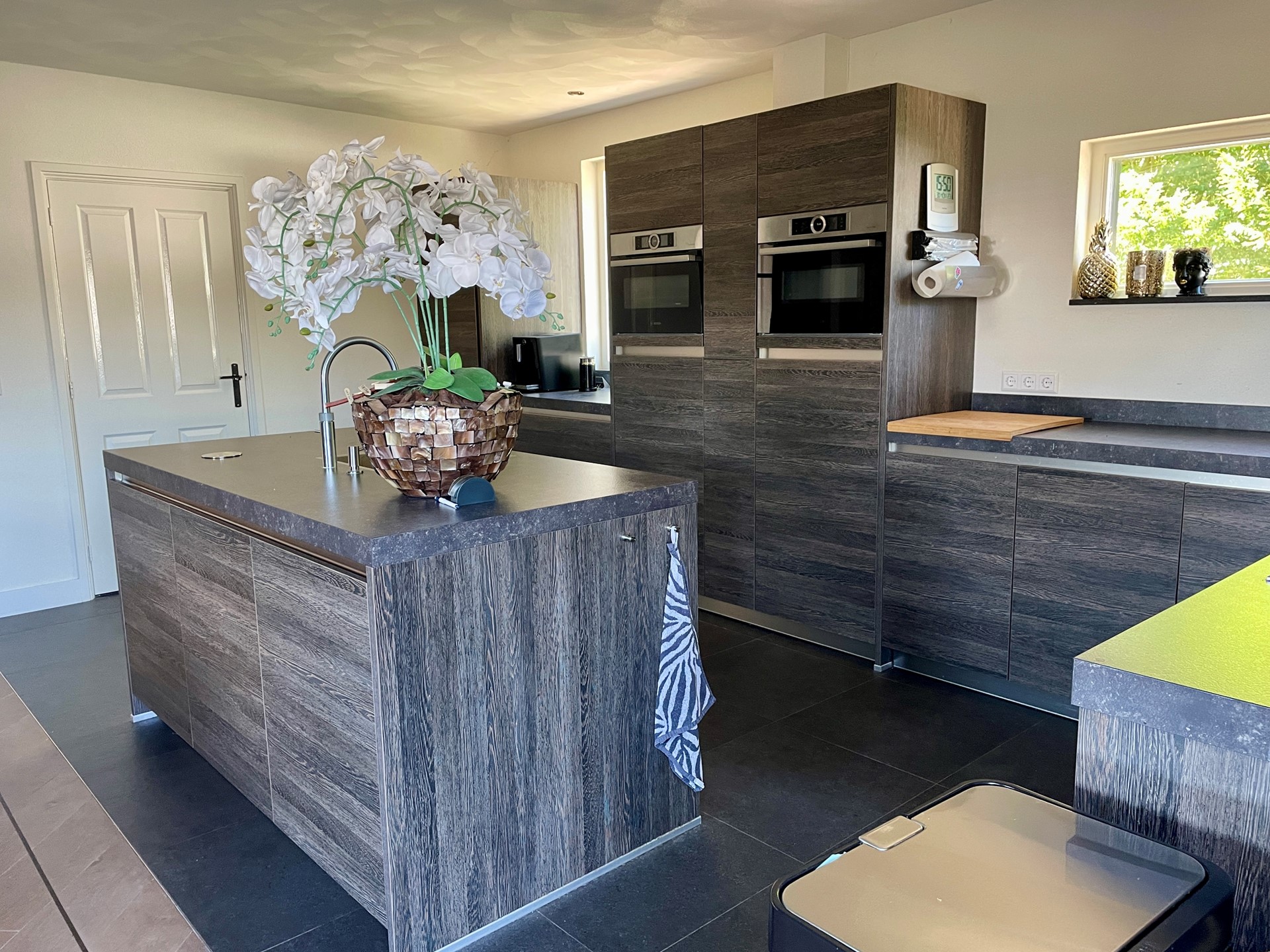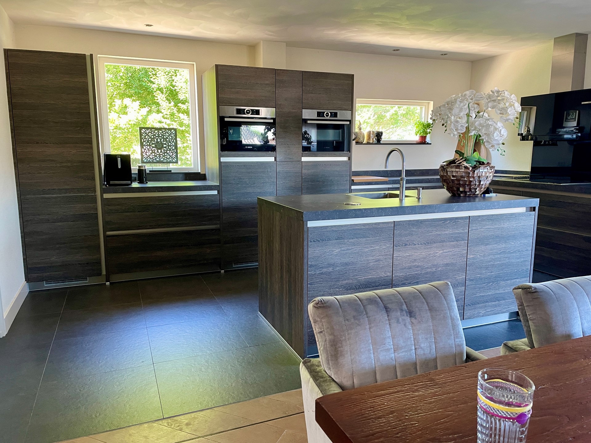 De moderne keuken is een èchte blikvanger: uitgerust met een spoeleiland, diverse inbouwapparatuur en ruime opbergmogelijkheden. Een heerlijke plek om te koken, borrelen en samen te zijn met familie of vrienden, er is zelfs ruimte voor een grote eettafel.