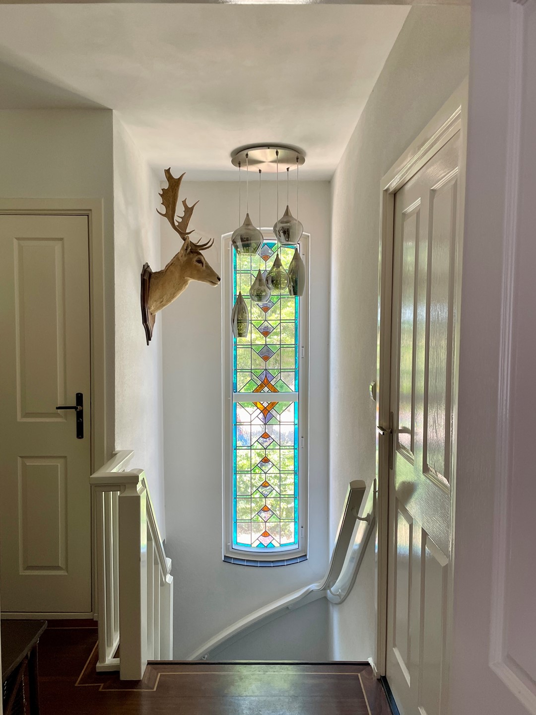 Via de trap bereik je de verrassend ruime L-vormige woonkamer met veel lichtinval en een moderne uitstraling.