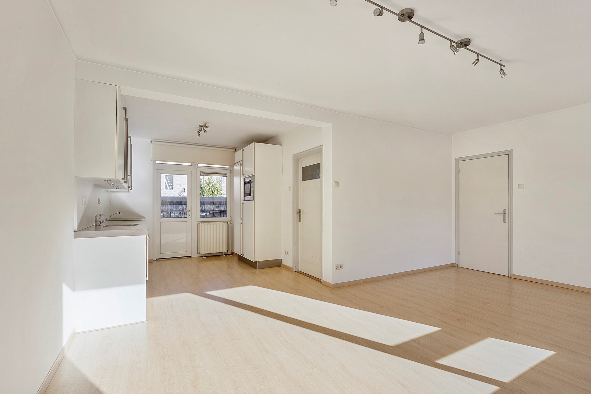 Vanuit de hal komt u in de lichte woonkamer aan de voorzijde met grote ramen die volop daglicht binnenlaten.