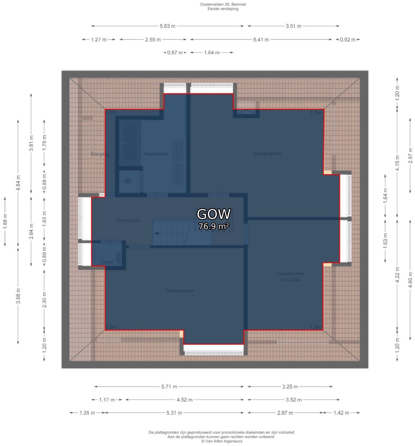 De informatie is door ons met de nodige zorgvuldigheid samengesteld. Alle verstrekte informatie moet beschouwd worden als een uitnodiging tot het doen van een bod of om in onderhandeling te treden. Onzerzijds wordt echter geen enkele aansprakelijkheid aanvaard voor enige onvolledigheid, onjuistheid of anderszins, dan wel de gevolgen daarvan. Alle opgegeven maten en oppervlakten zijn indicatief.