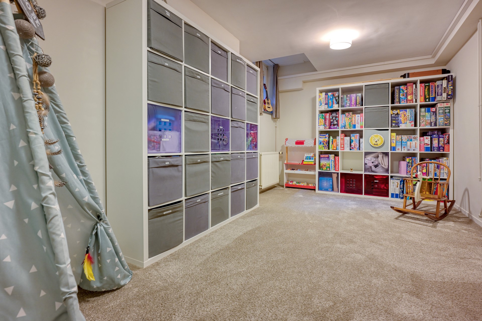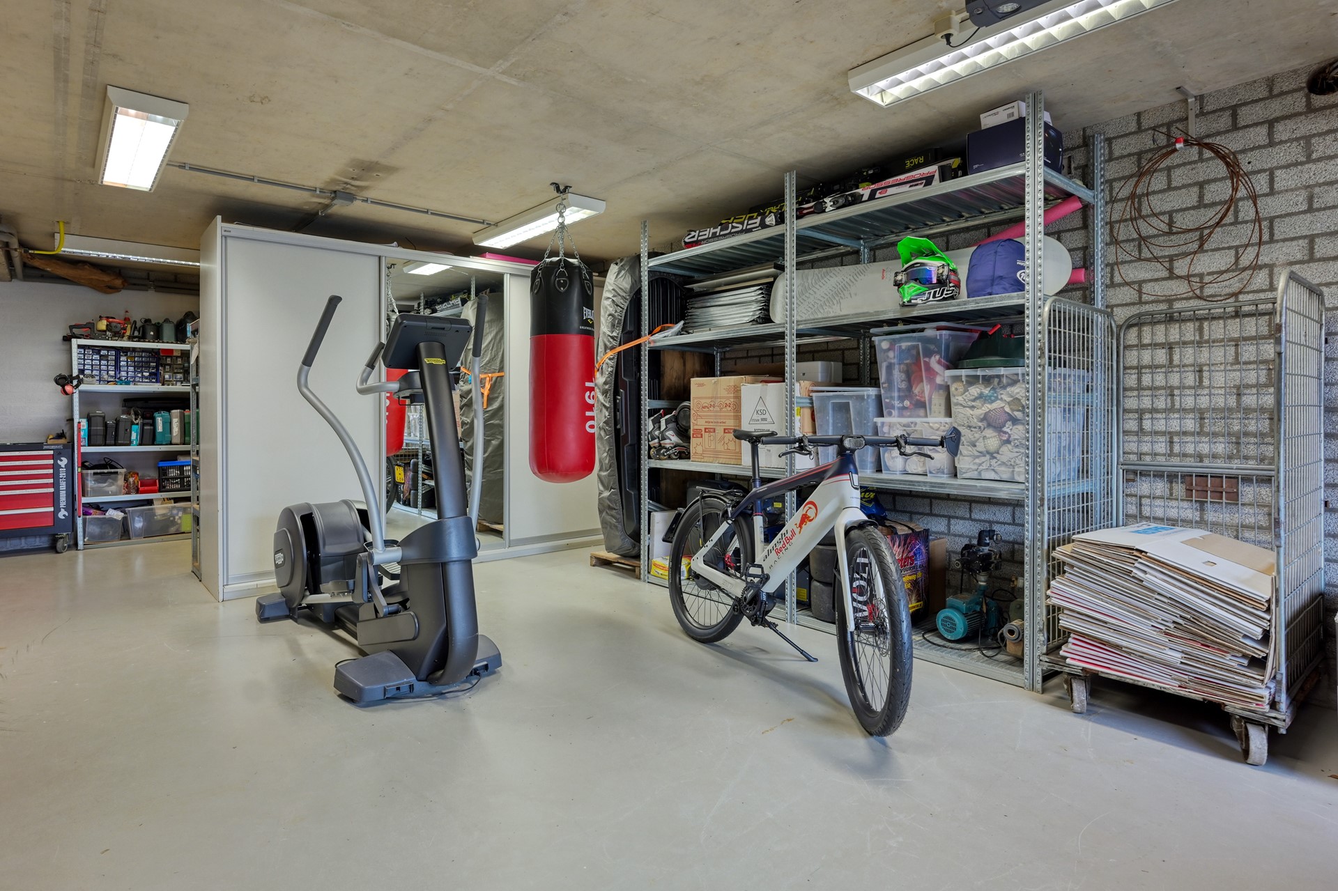 Het volwaardige souterrain biedt verrassend veel extra ruimte. Hier vindt u een ruime inpandige garage met elektrische, op afstand bedienbare garagedeur, en ruimte voor meerdere auto's. Daarnaast beschikt deze verdieping over een royale kantoor- of hobbyruimte, een separate ruimte die momenteel in gebruik is als speelkamer en een brandveilige archiefruimte, thans ingericht als wijnkelder.