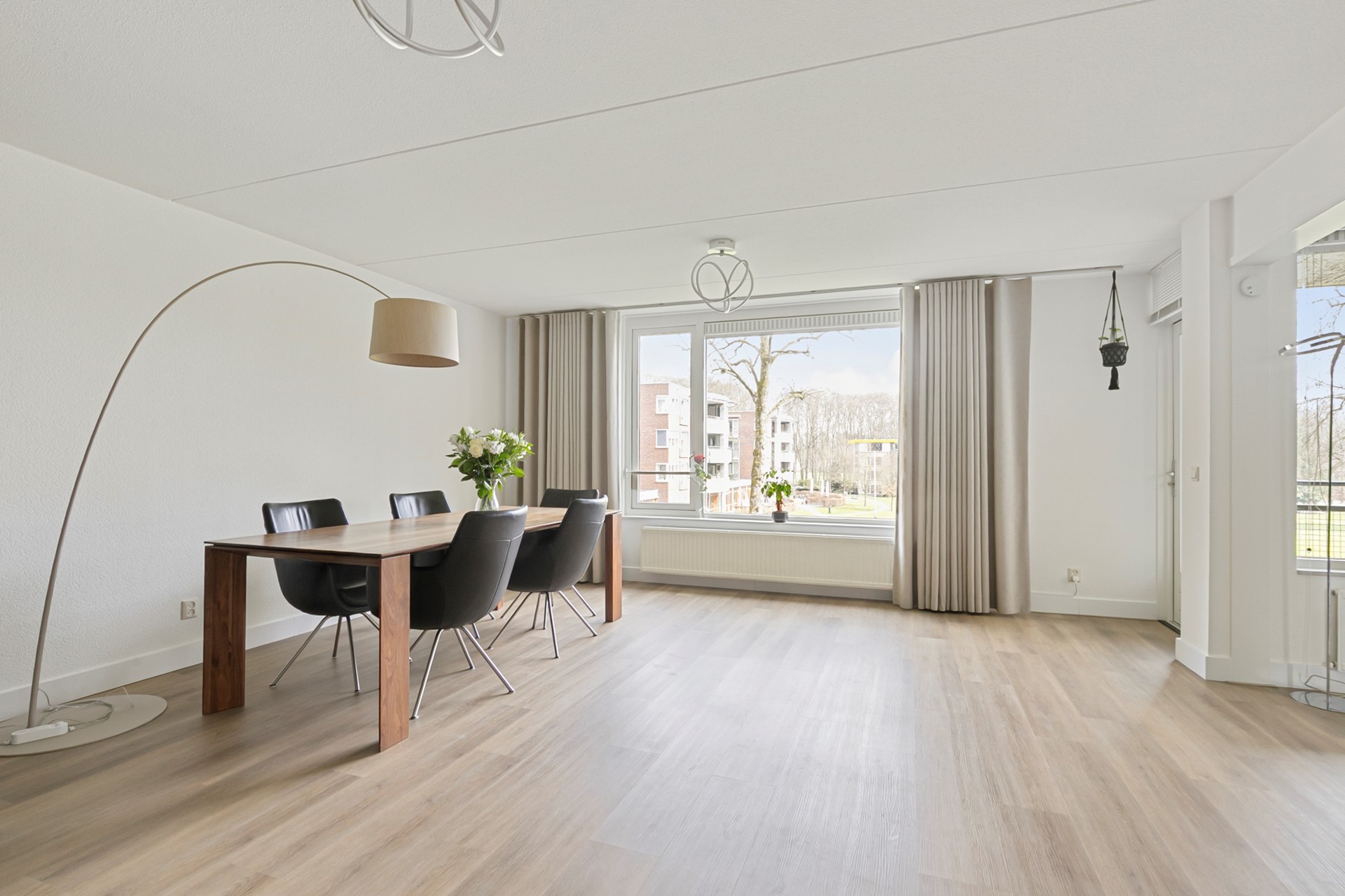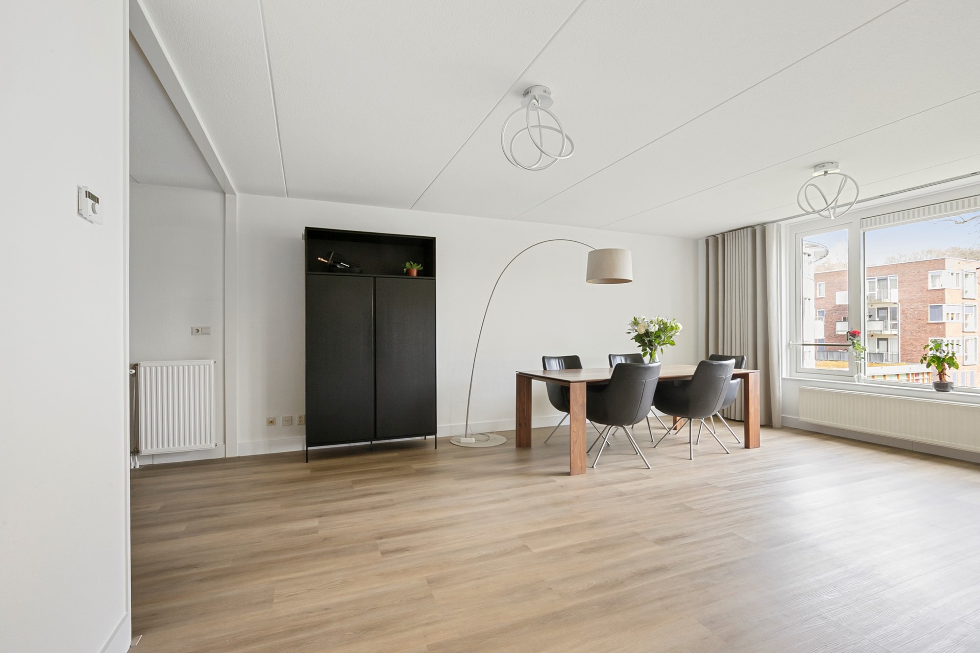De lichte en ruime woonkamer heeft dankzij de grote raampartijen een prettige lichtinval en staat in open verbinding met de moderne keuken, welke is voorzien van diverse inbouwapparatuur. Vanuit de woonkamer is er toegang tot het balkon op het oosten, een fijne plek om in alle rust van de ochtendzon te genieten.