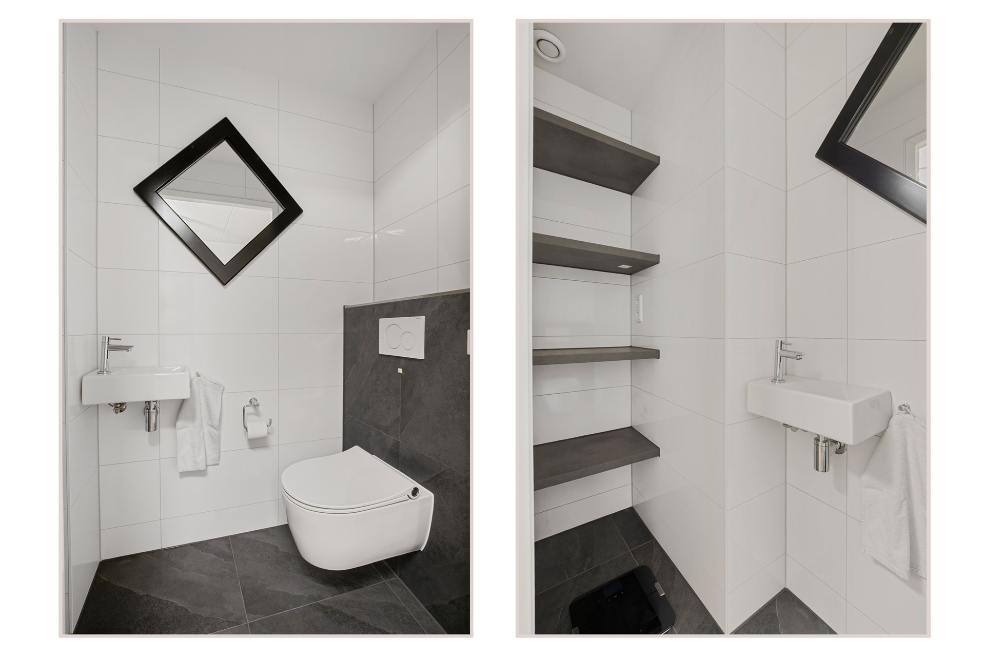 Ruime hal met modern toilet met fontein en toegang tot de verschillende vertrekken.